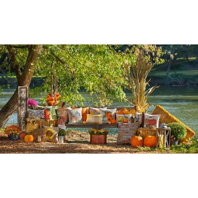 - One (1) Thanksgiving throw pillow (16.5” x 16.5” x 5” )