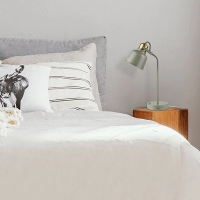 With a large sage green metal shade, a stunning old-school socket detail and a sage green base that boasts a 2.1A USB port, the Dakota Desk Lamp offers maximum style and functionality. Sitting at 18-inches high with a warm matte sage green finish and an impressive 6-inch wide shade, this lamp makes a statement without being too oversized. The shade pivots up and down to direct the light where you need it most and the 5-inch base uses a small amount of space on your desk freeing it up for all your work. Plus, the matte sage green finish adds a pop of color to your home office, dorm room, side table or reading nook.