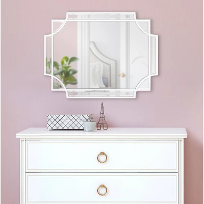 The Minuette wall mirror is the perfect way to expand your smaller spaces while also adding a timeless, beautiful accent piece. It features a glam, overlapping geometric frame, providing you with an eye-catching decor piece your friends and family won’t want to miss. With its clean white finish on its frame, this decorative statement looks perfect in your home, including the bedroom, bathroom, entryway, dining room, or kitchen. The Minuette also looks fantastic as a piece of decor, but it also features plenty of function. Adding a mirror to your home reflects and spreads light, opening up your otherwise smaller spaces and bringing in dimension. You could even use the Minuette mirror as a chic bathroom wall mirror above your sink. This mirror stands at 24 inches tall by 18 inches wide, giving you the perfect size to display on its own or multiples, creating a timeless, elegant wall display. This lightweight and sophisticated wall mirror is also easy to hang with secure metal D-ring hangers.
