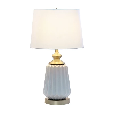 This traditional yet modern table lamp is sure to make a statement in your living room, bedroom, office or foyer! The soft gray ceramic base is accented by antique bronze metal throughout adding a vintage touch but the crisp, white fabric shade sits atop to for a fresh, modern edge.