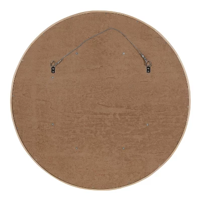 The Evans wall mirror adds a lovely, boho-chic accent to any room of your home. The Evans mirror has a robust, solid poplar wood frame with a light natural finish, creating a functional, premium accent that’s perfect for any mid-century modern living or office space. The interior glass of this mirror floats within the frame, providing an eye-catching, unique design detail and statement. The Evans mirror features a 30-inch diameter, providing the perfect broad accent to highlight over a fireplace or console table. Hanging a mirror in your home spreads more light throughout the area, creating more depth and dimension even in small spaces. It’s perfect for any modern living room, bedroom, entryway, dining room, or office. You could also use this functional wall accent as a bathroom mirror above a vanity or sink. The Evans wall mirror makes for a lovely focal point on its own, or you can display it in multiples for a grand, mid-century wall display. This wall mirror hangs in a matter of seconds with convenient metal D-ring hangers securely attached to the back.