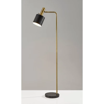 An essential addition to mid-century modern decor, the Emmett Floor Lamp is both functional and stylish. A small footprint allows this piece to fit into various spaces whether it is next to your favorite reading chair, sofa or your home office. An adjustable shade allows for light to be directed where it is needed. A painted black metal and antique brass finish is accented by an elegant black marble base.