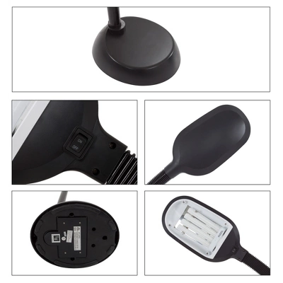 Bring stylish innovative lighting to your home, office, or workspace with the Adjustable Floor Lamp by Lavish Home. This stylish craft light has a modern black finish with a matching 64-inch-long cord for versatile placement. Equipped with a 1300 lumens 27W CFL bulb with a 6500K color temperature, this natural daylight lamp projects pure bright, natural light, making it easier to see while helping to eliminate eye stress and fatigue. The goose neck arm provides flexible height adjustment and unlimited angle choices, making it easy to focus the light exactly where you need it – perfect for use as a tattoo light, puzzle light, sewing light, or even a flashlight for eyelash extensions. A must-have addition to your craft room or living room, this lamp provides natural full spectrum daylight hues, brightening even rooms that have minimal sun exposure.