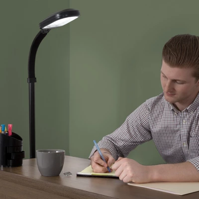- APPROXIMATES NATURAL LIGHT – Equipped with a 1300 lumens 27W CFL bulb with a 6500K color temperature, this daylight lamp projects pure bright, natural light, making it easier to see while helping to eliminate eye stress and fatigue.