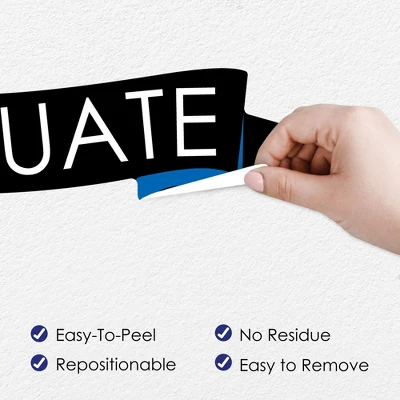 Blue Grad – Best is Yet to Come Wall Decals Backdrop includes 1 sheet of vinyl wall stickers that include letters and shape pieces that form the perfect Royal Blue Congrats backdrop for your Graduation Party. Wall Decal sheet measures 50 inches wide by 16.5 inches tall. Pieces range in size from 30 x 6.5 inches to 3.25 x 3 inches. Effortless Decor: The Blue Grad – Best is Yet to Come stickers are an easy DIY party decoration that will make a big impact at your celebration. Stick them on a flat wall surface to create that picture-perfect setting and then grab your camera to capture all the fun. Easy to Use: Blue Grad – Best is Yet to Come vinyl decals are easy-to-peel and repositionable. Wall art stickers will adhere to various surfaces including painted walls, plastic, wood, glass, and metal. To use, make sure your surface is clean and dry. Slowly peel the sticker from the paper to avoid tearing and smooth over with your hand. They are also easy to remove, leaving no residue. High-Quality Supply: Blue Grad – Best is Yet to Come wall stickers come with a quality matte finish and vibrant colors. They are printed on water-resistant professional quality material and will arrive on one full sheet rolled. Made In The USA: Blue Grad – Best is Yet to Come Wall Decals are designed and manufactured at our Wisconsin facility using materials that are Made in the USA.