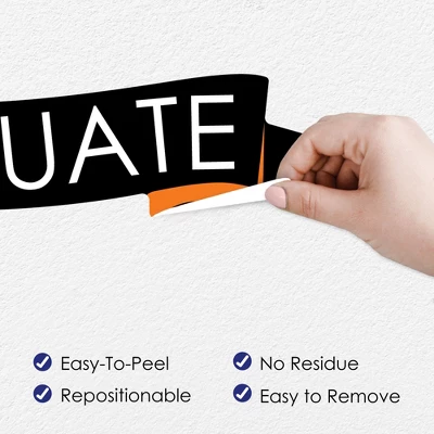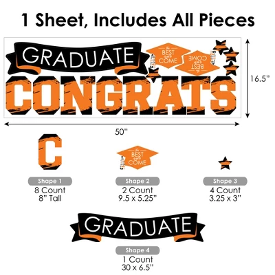 Orange Grad – Best is Yet to Come Wall Decals Backdrop includes 1 sheet of vinyl wall stickers that include letters and shape pieces that form the perfect Orange Congrats backdrop for your Graduation Party. Wall Decal sheet measures 50 inches wide by 16.5 inches tall. Pieces range in size from 30 x 6.5 inches to 3.25 x 3 inches. Effortless Decor: The Orange Grad – Best is Yet to Come stickers are an easy DIY party decoration that will make a big impact at your celebration. Stick them on a flat wall surface to create that picture-perfect setting and then grab your camera to capture all the fun. Easy to Use: Orange Grad – Best is Yet to Come vinyl decals are easy-to-peel and repositionable. Wall art stickers will adhere to various surfaces including painted walls, plastic, wood, glass, and metal. To use, make sure your surface is clean and dry. Slowly peel the sticker from the paper to avoid tearing and smooth over with your hand. They are also easy to remove, leaving no residue. High-Quality Supply: Orange Grad – Best is Yet to Come wall stickers come with a quality matte finish and vibrant colors. They are printed on water-resistant professional quality material and will arrive on one full sheet rolled. Made In The USA: Orange Grad – Best is Yet to Come Wall Decals are designed and manufactured at our Wisconsin facility using materials that are Made in the USA.