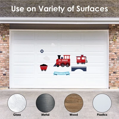 Big Dot of Happiness Railroad Party Crossing Wall Decals includes 1 sheet of 20 assorted vinyl wall art stickers that you can arrange to add a special touch to your home decor. Wall Decal sheet measures 50” wide by 16.5” tall. Pieces range in size from 15” x 10.5” to 2” x 1.5”. Effortless Decor: The Train wall stickers are an easy solution for bringing in some added charm to your space within minutes! You can use the wall decals for nursery or kids’ rooms, impressive photo backdrops, or as easy decor at your Baby Shower or Birthday Party. Easy to Use: Railroad Party Crossing vinyl decals are easy-to-peel and repositionable. Wall art stickers will adhere to various surfaces including painted walls, plastic, wood, glass, and metal. To use, make sure your surface is clean and dry. Slowly peel the sticker from the paper to avoid tearing and smooth over with your hand. They are also easy to remove, leaving no residue. High-Quality Supply: Railroad Party Crossing wall stickers come with a quality matte finish and vibrant colors. They are printed on water-resistant professional quality material and will arrive on one full sheet rolled. Made In The USA: Train Wall Decals are designed and manufactured at our Wisconsin facility using materials that are Made in the USA.