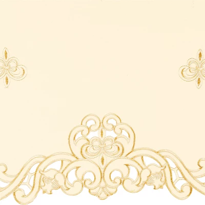 Dress your windows in elegant style with these beautifully detailed embroidered curtains. The curtains have an intricate scrolling design at the bottom with unique cutouts. Available as a swag valance and a tier set in two lengths, each is sold separately. Rod pocket tops. Machine wash. Polyester; imported. Choose: Lavender, Ivory or Rose. Available in: Valance (58″L x 36″W), 24″ Tier Pair (24″L x 30″W each) or 36″ Tier Pair (36″L x 30″W each).
