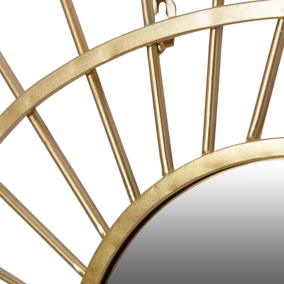 This round gold wall mirror showcases a finish and silhouette that suits both glam and natural-themed living room and dining interiors. This item ships in 1 carton. Due to the handmade nature of this item, no two will be alike, there will be slight differences in shape, size, and color. Can be hung horizontally using the keyholes on the back; nails and screws not included. Suitable for indoor use only. This is a single gold colored entryway mirror. Contemporary style.
