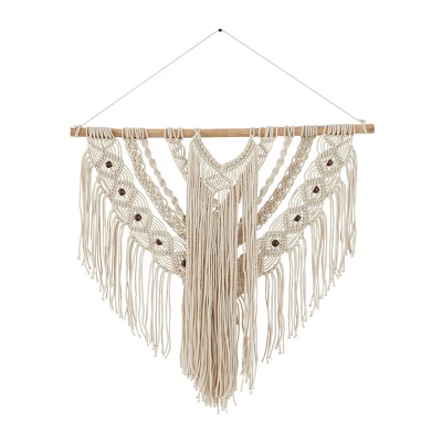 Cotton Macrame Intricately Weaved Wall Decor With Beaded Fringe Tassels – Olivia & May