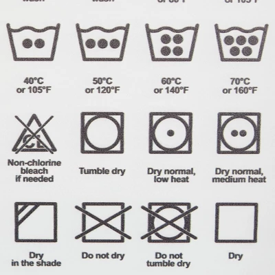 - •This rectangle laundry door sign features a solid white panel with illustrations in black ink