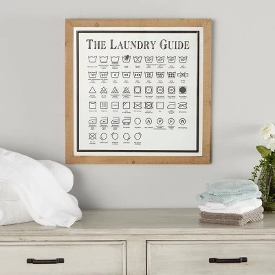 This laundry room sign can hang using a jute rope to complement its farmhouse design. This item ships in 1 carton. Can be hung vertically using the sawtooths on the back; nails and screws not included. Suitable for indoor use only. This item ships fully assembled in one piece. This is a single white colored wall sculptures. Farmhouse style. Typography includes “The Laundry Guide”.