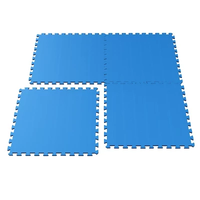 - PRODUCT DETAILS – Materials: EVA Foam. Dimensions: (L) 24″ x (W) 24″ x (H) 0.50″. 16-Square-Feet of Coverage. Pack Includes 4 Tiles and 2 Straight Edge Pieces. Color: Blue.