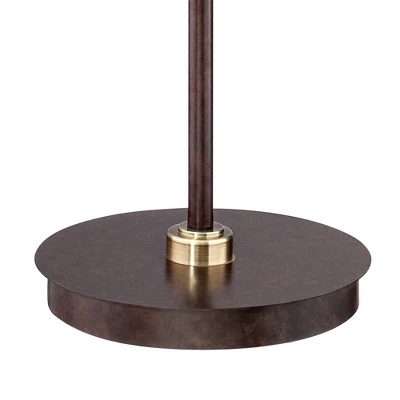 Add character and old-time charm to your living space with this industrial floor lamp with a USB dimmer. From the Franklin Iron Works brand, the design is crafted from metal and comes in a rich bronze finish with antique brass accents. Cognac glass surrounds a nostalgic Edison bulb – the final vintage-style touch to this attractive lamp. The tabletop dimmer works with dimmable CFL and dimmable LED bulbs, as well as halogen and incandescent bulbs, and it also comes with a built-in USB port, allowing you to easily charge phones and other devices.