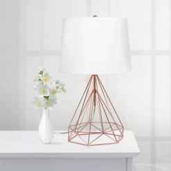 Geometric Wired Table Lamp With Fabric Shade Rose Gold – Lalia Home