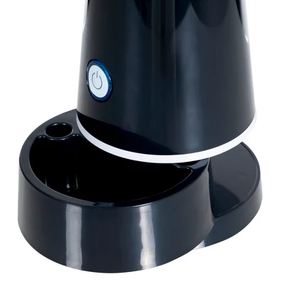 This simple yet modern desk lamp will bring style and function to your work space. The 4 brightness settings make it easy to have the amount of light you need, exactly where you need it. The futuristic, cone design adds a fun and unique touch. 73 inch Power Cord includes 110V wall adaptor, Input: DC IN 12V. Dimensions: Height: 15 inches, Base Diameter: 4.5 inches, Light Length: 14.25 inches.