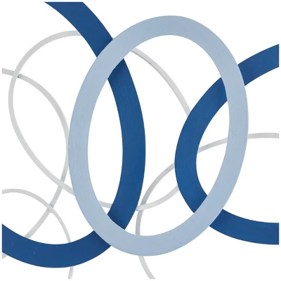 Enhance the beauty of your walls with this geometric hoop wall art that will bring out your dark or vibrant color walls. This item ships in 1 carton. Can be hung horizontally or vertically using the metal rings on the back; nails and screws not included. Suitable for indoor use only. This item ships fully assembled in one piece. This is a single blue colored wall sculptures. Contemporary style.