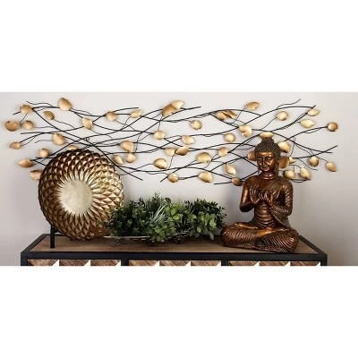 - •A stylish three dimensional decor piece for walls that features a contemporary theme and carved intertwining black branches with metallic gold leaves