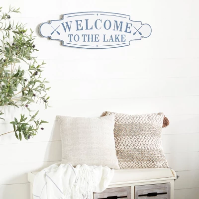 Create an excellent focal point on your walls paired with some cute accent tables, and level up your home with this amazing wall Decor. This item ships in 1 carton. Can be hung horizontally using the metal rings on the back; nails and screws not included. A great versatile decor for indoor or outdoor display but are not rust or weather resistant. This item ships fully assembled in one piece. This is a single blue colored wall sculptures. Coastal style. Message reads “Welcome to the Lake”.
