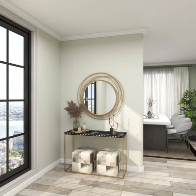 Apart from decorating your home, the purpose of this wall mirror is to bounce back outdoor light to a small room to make it look bigger. Pair this decorative wall mirror with house plants or other wall decor accent pieces to blend everything together perfectly. This stylish wall mirror is a great accent piece for the living room, the hallway, and the bedroom.. This item ships in 1 carton. Can be hung vertically using the sawtooths on the back; nails and screws not included. Suitable for indoor use only. This item ships fully assembled in one piece. This is a single gold colored entryway mirror. Contemporary style.