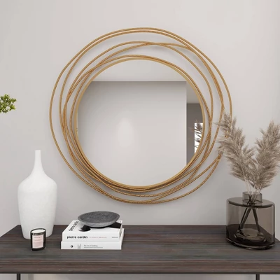 - •This gold wall mirror features an irregular set of circular wirings forming the main frame design