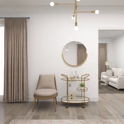 - •Gold wall mirror has a solid iron frame that cradles rounded glass