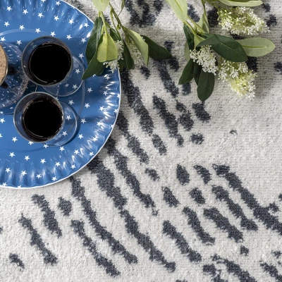 Add a little bit of contemporary flair to your home with this machine-made rug featuring a bold abstract pattern that feels both sleek and inviting. Made of tough synthetic fibers, this rug is ideal for high traffic areas of your home and will resist stains. A rug pad is recommended to prevent slipping and to keep the rug lying flat in one place.