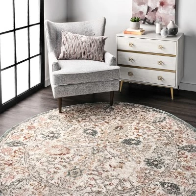 Add a refreshing transitional touch to your floor with this vintage floral area rug. The soft color palette is sure to blend beautifully with existing décor from traditional to bohemian. Machine-made in Turkey of soft synthetic materials this rug is built to last and comfortable underfoot. Kick back and relax with our easy to care for and pet-friendly area rugs.