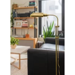 62″ Crofton Metal Floor Lamp With USB Ports And Drum Shade Antique Brass – Cal Lighting