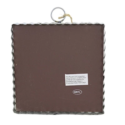 - The Wooden Painted Picture Is Framed In Rippled Metal.