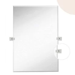 Hamilton Hills 24″ X 36″ Rectangular Frameless Mirror With Polished Chrome Squared Wall Brackets