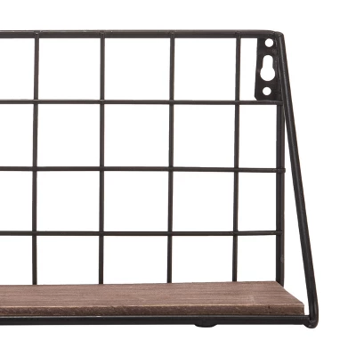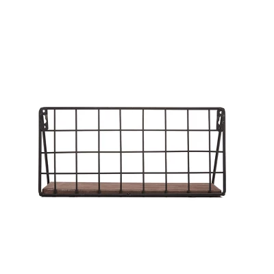 - Style: This wall shelf features a black wire back with a wooden shelf. Style with and display your favorite decorative accents, plants, frames and other home décor.