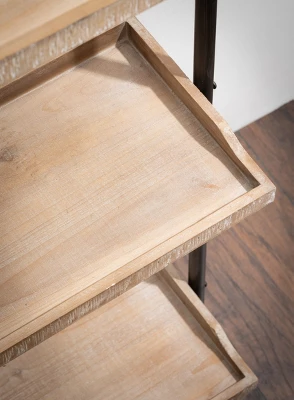 Set anything upon this shelf and it instantly shows it off. Featuring three wooden slats and a mirror at the top of the piece, this shelf measures in at six feet two inches.Over the last 55 years, Sullivans has become an industry leader in home decorations. Our brand is rooted in tradition while incorporating modernized trends to keep your home looking up to date with timeless style. Here at Sullivans, we pride ourselves on creating product designs focused on quality and value, ensuring that our customers have access to beautiful products at reasonable price points.