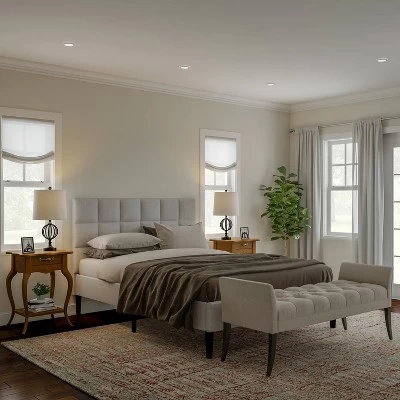 - The lamps are topped off with ivory drum shaped fabric shades for a modern rustic style