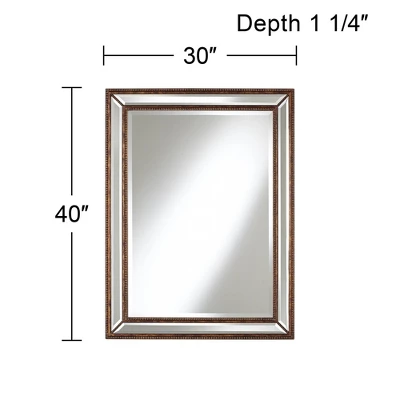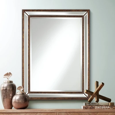 With the look of a treasured antique accent, this elegant wall mirror will add panache and style to your home decor. A wide frame of mirror glass is set apart from the main mirror by beaded details in mottled bronze finish. Bevels on both the frame and main mirror glass are an elegant touch to this exclusive mirror design from Uttermost.