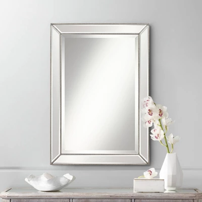 Add the finishing touch to your decor with this stunning beveled mirror. The large shape allows you the versatility to hang on a wall or lean against a wall. The beveled glass is surrounded by a double beaded trim in a cool toned Palais silver finish.