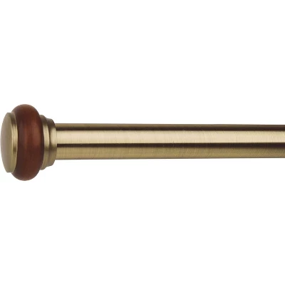 1-1/8 Adjustable Telescopic Steel Rod Set. Wall mounting Brackets and hardware included; adjustable brackets (4″-5.5″ proj). Color: Antique Brass. Variety of Plated and Painted Finishes depending on finial style. Clean with damp cloth.