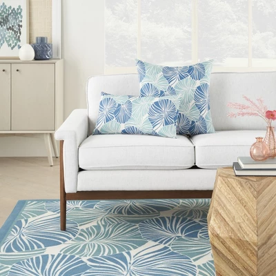 Tropical-inspired with a modern touch, this outdoor throw pillow from the Waverly Collection brings bold, breezy style to your patio, porch, yard, or indoor space. This softly textured polyester throw pillow features an oversized botanical pattern that reverses to a retro geometric pattern for double the style. Includes a polyester insert and zipper closure, so you can clean up spills with ease. Coordinates perfectly with matching Waverly Sun N’ Shade rug.