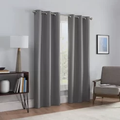 Solid Textured Cascade Room Darkening Jacquard Grommet Curtain Panel Set By Blue Nile Mills