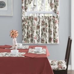 Ellis Curtain Madison Floral Design Printed Natural Ground 1.5″ Rod Pocket Tailored Tier Brick