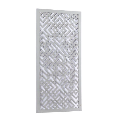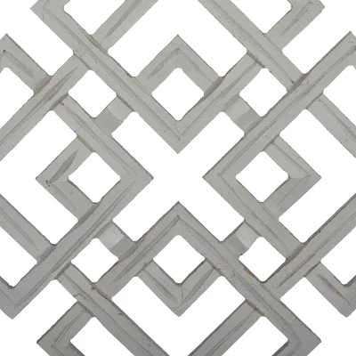 - •This grayish white carved wood wall decor is a see-through rectangular panel with overlapping diamond carvings